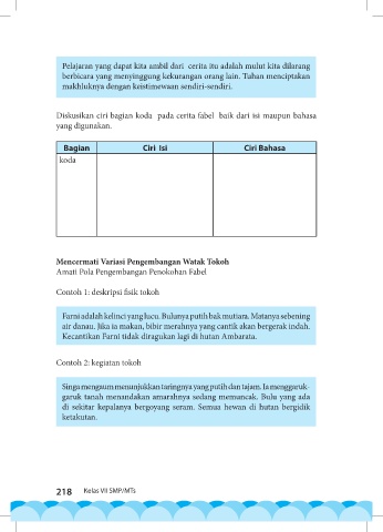 Diskusikan ciri bagian koda pada cerita fabel baik dari isi maupun bahasa