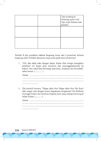 langsung salah! Tulislah alasanmu yang sesuai pada baris berikutnya!