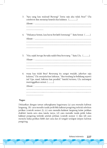 5. “Aku sejak berupa berudu sudah bisa berenang “ kata Ulu. (...........)