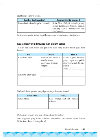 Dari kegiatan yang kamu lakukan, simpulkan ciri umum cerita fantasi.