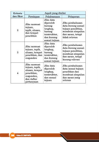 Kriteria Aspek yang dinilai