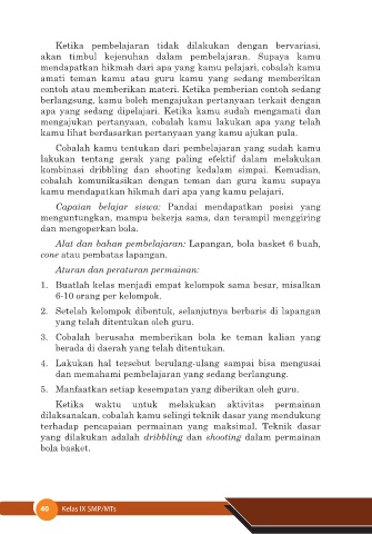 Alat dan bahan pembelajaran: Lapangan, bola basket 6 buah,