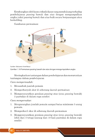 Gambar 1.18 Permainan passing bawah dan atas dengan mengumpulakan angka