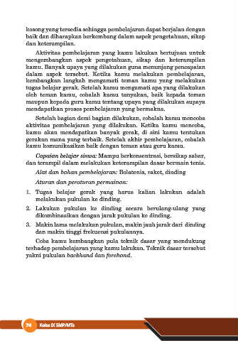 Alat dan bahan pembelajaran: Bolatenis, raket, dinding