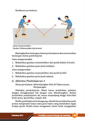 Deskripsi pembelajaran: Siswa harus melakukan pukulan