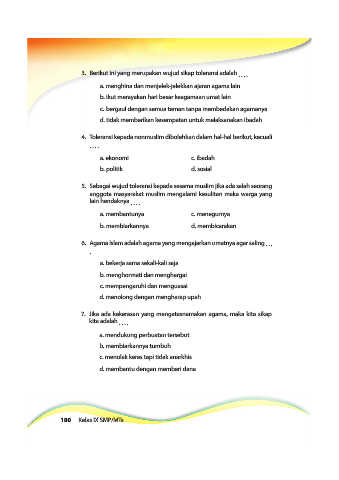 3. Berikut ini yang merupakan wujud sikap toleransi adalah . . . .