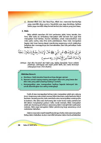 Hadis di atas menegaskan bahwa malu merupakan salah satu cabang