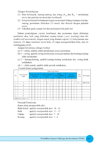 bermain, (2) dapat memukul servis bola, (3) dapat mengembalikan bola, dan (4)