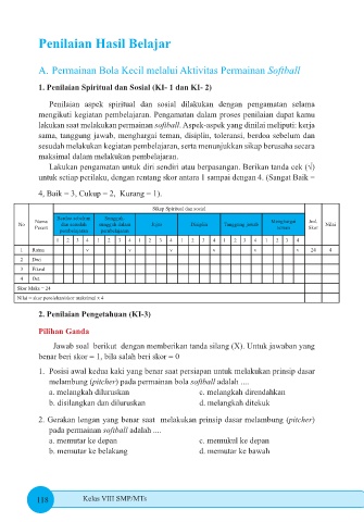 lakukan saat melakukan permainan softball. Aspek-aspek yang dinilai meliputi: kerja