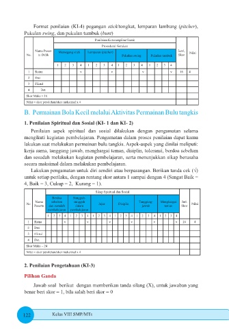 lakukan saat melakukan permainan bulu tangkis. Aspek-aspek yang dinilai meliputi: