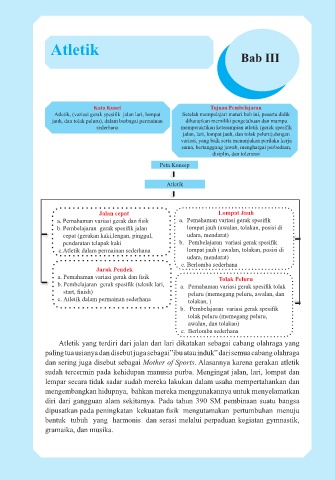 Atletik, (variasi gerak spesif k jalan lari, lompat Setelah mempelajari materi bab ini, peserta didik