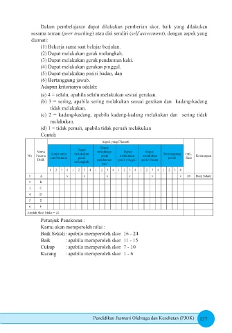 sesama teman (peer teaching) atau diri sendiri (self assessment), dengan aspek yang
