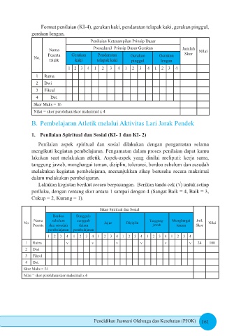 lakukan saat melakukan atletik. Aspek-aspek yang dinilai meliputi: kerja sama,