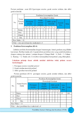 Format penilaian (KI-4) persiapan awalan, gerak awalan tolakan, dan akhir