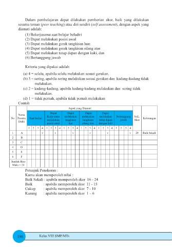 sesama teman (peer teaching) atau diri sendiri (self assessment), dengan aspek yang