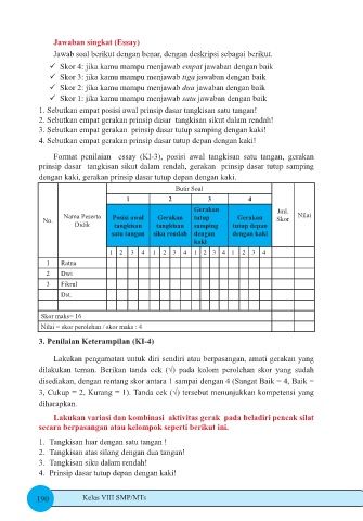 Format penilaian essay (KI-3), posisi awal tangkisan satu tangan, gerakan
