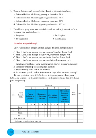 Format penilaian essay (KI-3) , factor kebugaran jasmani, komponen