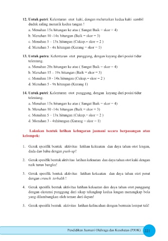 13. Untuk putra: Kelenturan otot punggung, dengan kayang dari posisi tidur
