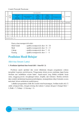 Penilaian aspek spiritual dan sosial dilakukan dengan pengamatan selama