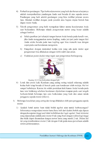 c) Usahakan posisi duduk tetap tegak saat pengereman berlangsung.