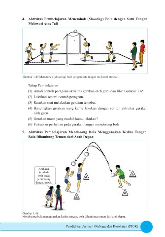 Gambar 1.45 Menembak (shooting) bola dengan satu tangan melewati atas tali.