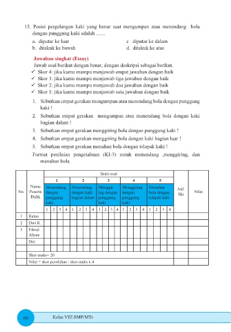 Format penilaian pengetahuan (KI-3) untuk menendang ,menggiring, dan