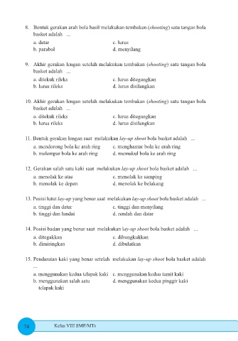 b. melempar bola ke arah ring d. memukul bola ke arah ring