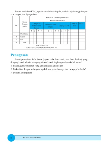 Format penilaian (KI-4), operan melalui atas kepala, tembakan (shooting) dengan
