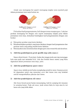 ke samping kanan. Pada side stance, jarak antara bahu ke meja atau ke net