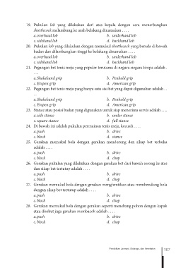 19.  Pukulan  lob yang dilakukan dari atas kepala dengan cara menerbangkan