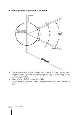 lingkaran, lewat tepi balok lemparan yang panjangnya 1,22 m; tinggi 10 cm;