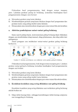 Gambar 6.5 Aktivitas pembelajaran cara melakukan variasi gerakan guling ke belakang