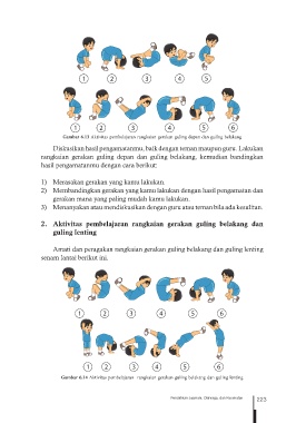 Gambar 6.14 Aktivitas pembelajaran rangkaian gerakan guling belakang dan guling lenting