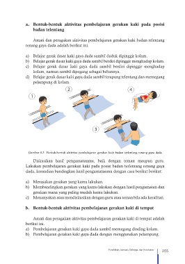 Gambar 8.3 Bentuk-bentuk aktivitas pembelajaran gerakan kaki badan terlentang renang gaya dada