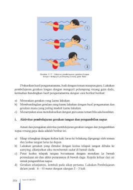 pembelajaran gerakan lengan dengan mengepit pelampung renang gaya dada,