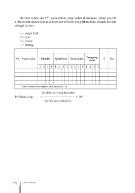 No. Nama siswa Disiplin Sportivitas Kerja sama Jawab ∑ NA