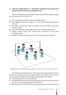 e) Aktivitas Pembelajaran 5 : melakukan pembelajaran passing bola