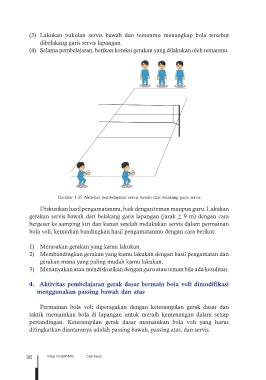 Gambar 1.35 Aktivitas pembelajaran servis bawah dari belakang garis servis