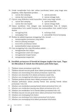 27. Operan yang dilakukan untuk menerobos lawan yang tinggi adalah . . . .