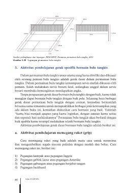 Sumber perlengkapan dan lapangan: PBSI/BWF, Peraturan permainan bulu tangkis, 2010.