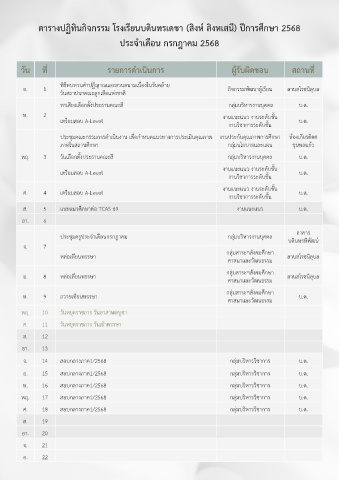 ตารางปฏิทินกิจกรรม โรงเรียนบดินทรเดชา (สิงห์ สิงหเสนี) ปีการศึกษา 2568