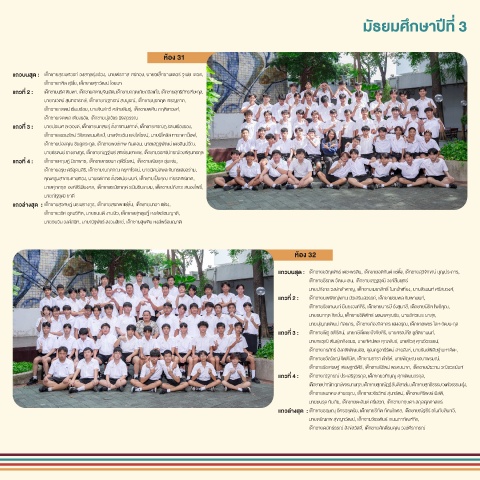 แถวที่ 4 :   เด็กชายหฤษฎ์ นิราพาธ, เด็กชายกรชนก ฤดีวิโรจน์, เด็กชายณิชกุล ชุ่มแจ่ม,
