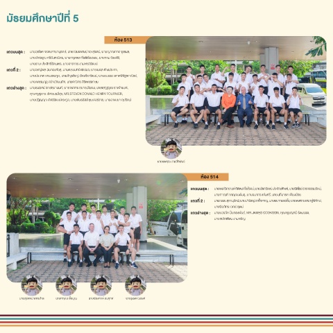 แถวบนสุด : นายอธิโชค จิรพงศานานุรักษ์, นายณันธิพัฒน์ จิวะสุรัตน์, นายญาณภัทร พูลผล,