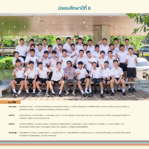 แถวที่ 3 : นายศุภกร เจริญศิลป์, นายภคพล วงษ์จ้อย, นายปัทมศิษฏ์ เจนพิพัฒน์สิริกุล, นายชยุต สุขุมภาณุเมศร์, นายปฏิภาณ ถาวรวลีรัตน์, นายวรวิช นราพิทยานารถ,