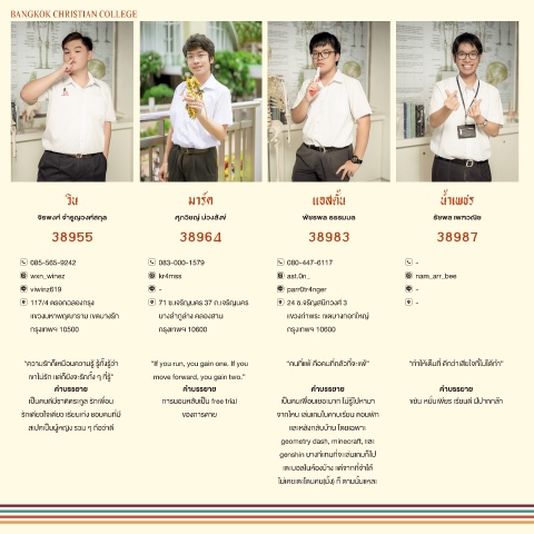 เป็นคนดีมีชาติตระกูล รักเพื่อน การนอนหลับเป็น free trial เป็นคนเพื่อนเยอะมาก ไม่รู้ไปหามา ขยัน หมั่นเพียร เรียนดี ฝีปากกล้า