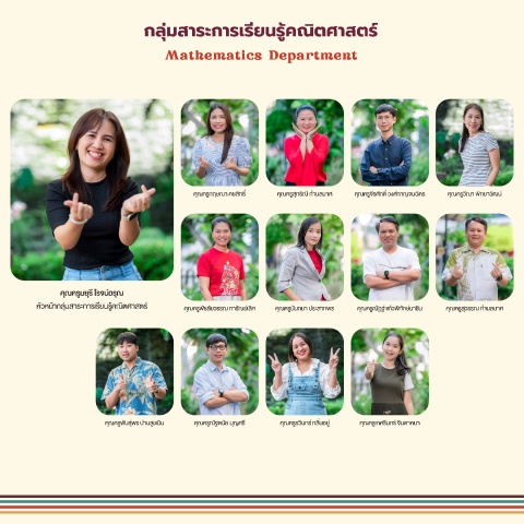 หัวัหัน้ากลมื่ส์าระการเรยนรคณตีศาส์ตีร ์ คุณครพัชลัยวัรรณ การัณย์เลิศ คุณครนันที่นา ปูระส์าที่พร คุณครณฏิฐ์ แกวัพิที่ักษ์นาชิน คุณครส์วัรรณ กํานลมื่าศ