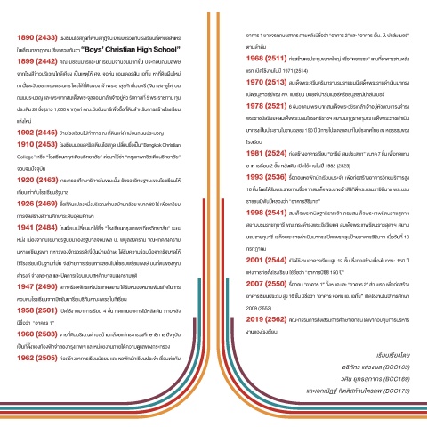 ในเดอนกรกฎาคมื่ เรยกรวัมื่กันวั�า “Boys’ Christian High School” ตีามื่ลำดับ