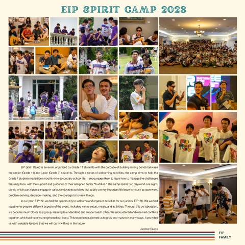 EIP Spirit Camp is an event organized by Grade 11 students with the purpose of building strong bonds between