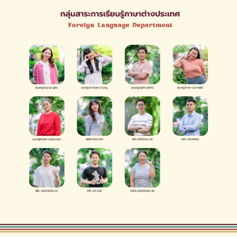 ู ั ู ู คุณครูขวััญกมื่ล ภู�เกษ คุณครปูภาวัรินที่ร์ ปูานหัน ู คุณครณัฐภที่ร ส์ุดที่่ปู คุณครปูภาดา ปูระภารัศมื่ ่ คุณครูโส์มื่ภิดา มื่าลยาภรณ ์ MISS RUI CAO MR. MINGHUI JIA MR. LIN WANG MR. JINZHANG LIU MR. LEI HAN MISS JINGXUAN LIN