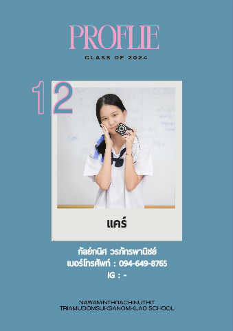 12 12 แคร์ ิ ั กลีย์กนิศ วิรีภูัทรีพัานชิย ์ เบอรี์โทรีศัพัท์ : 094-649-8765 IG : -